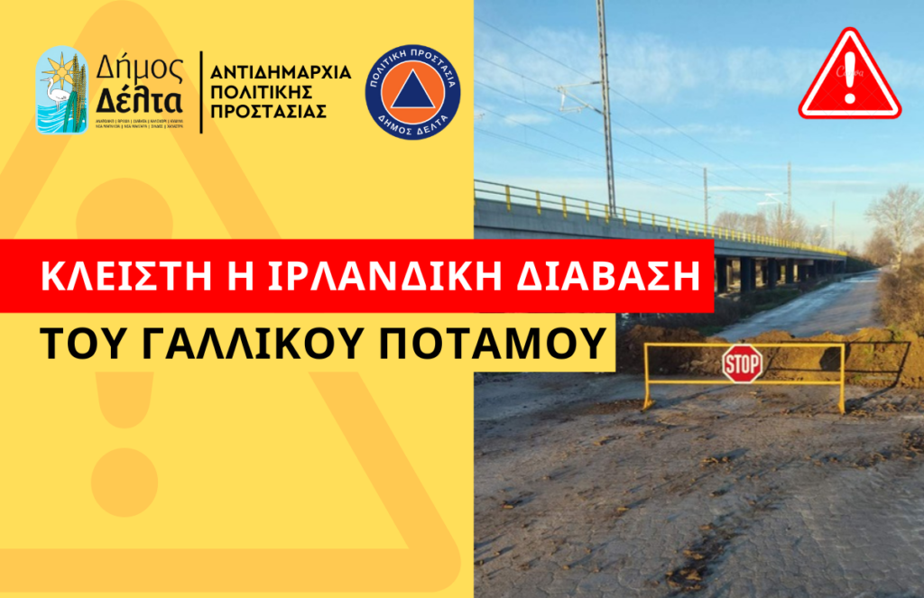 28 Ιανουαρίου 2026 28 Ιανουαρίου 2026ΑΝΑΚΟΙΝΩΣΗ ΠΟΛΙΤΙΚΗΣ ΠΡΟΣΤΑΣΙΑΣ – ΚΛΕΙΣΙΜΟ ΤΗΣ ΙΡΛΑΝΔΙΚΗΣ ΔΙΑΒΑΣΗΣ ΣΤΟΝ ΓΑΛΛΙΚΟ ΠΟΤΑΜΟΕξαιτίας των τελευταίων βροχοπτώσεων και του μεγάλου όγκου νερού που συσσωρεύτηκε στον Γαλλικό ποταμό η διέλευση οχημάτων από την ιρλανδική διάβαση της οδού Πόντου προς τη […]