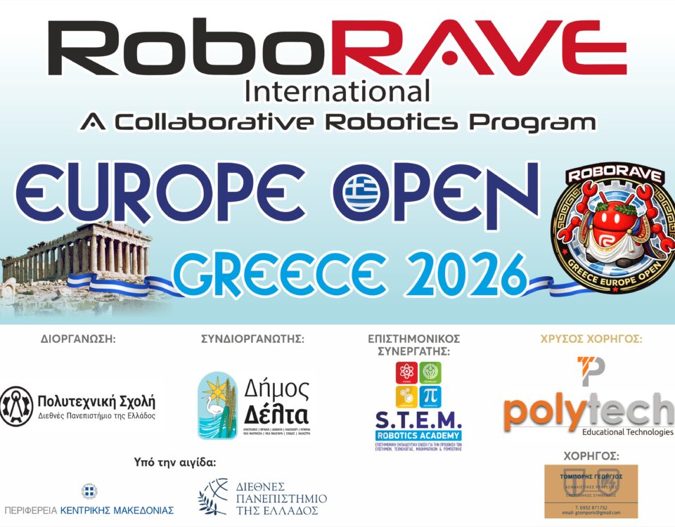 26 Μαρτίου 2026 26 Μαρτίου 2026To RoboRAVE Greece 2026 – Europe Open έρχεται στη Σίνδο!Ο Δήμος Δέλτα, ως συνδιοργανωτής της εκδήλωσης, σας προσκαλεί στο διεθνή διαγωνισμό εκπαιδευτικής ρομποτικής RoboRAVE Greece 2026 – Europe Open, που θα πραγματοποιηθεί το διήμερο 28 […]